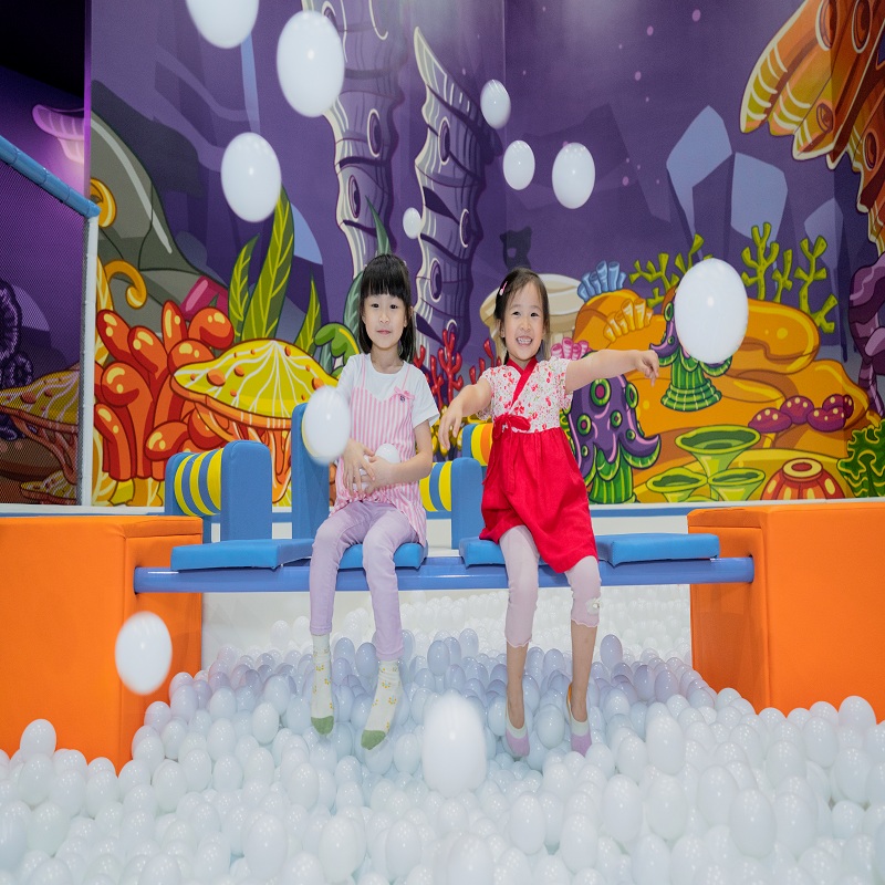 占地2,400平方呎的「泡泡纷FUN堡」及高达5米的自由落体游戏机「浪花弹弹塔」共同组成的海底历险世界,特别适合喜欢挑战刺激的小朋友!