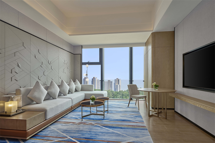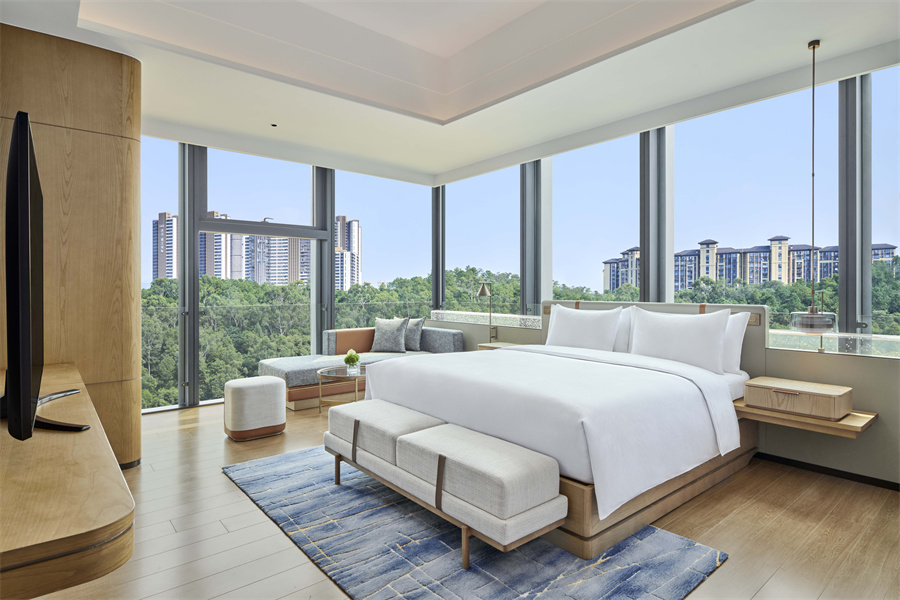 酒店拥有232间现代简约且蕴含岭南文化的客房,包含15间雅致舒适的套房。