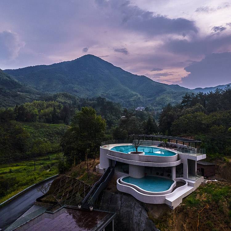 「等风」最吸睛的当属它那依山势层叠而上的双层恒温泳池。