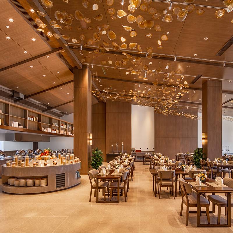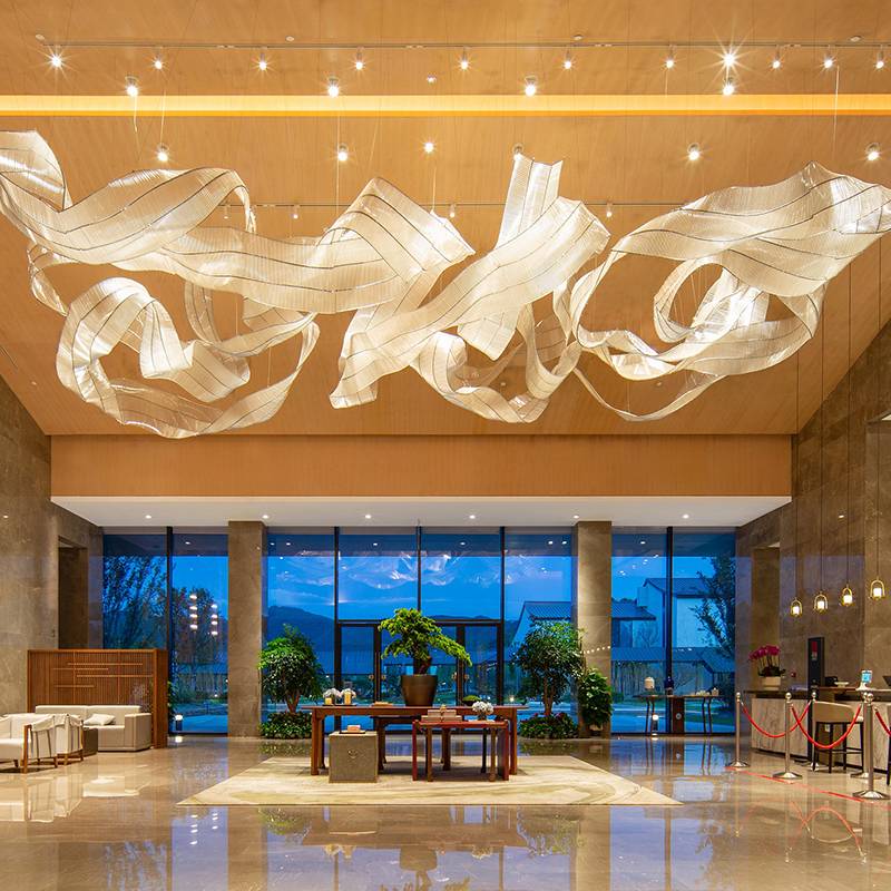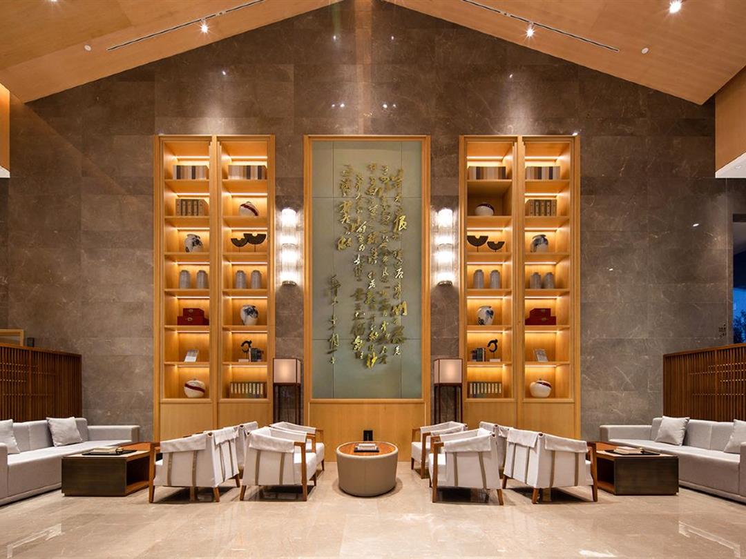 步入酒店大堂,高挑的空间感搭配柔和的灯光,