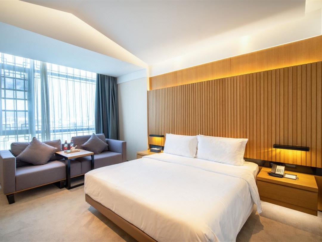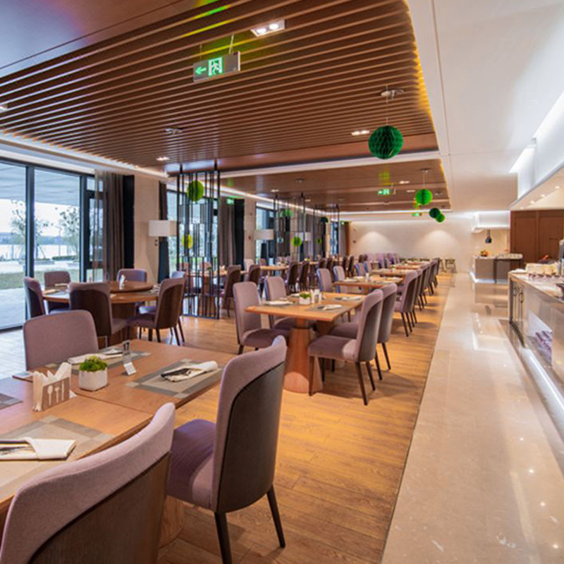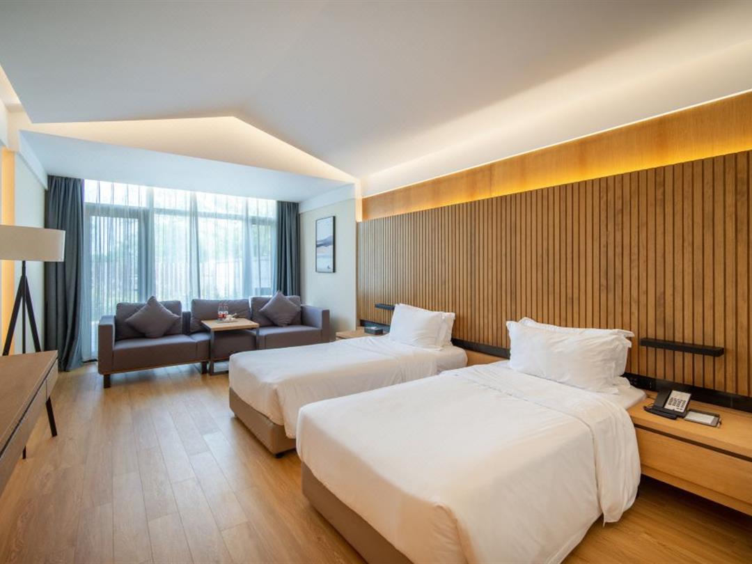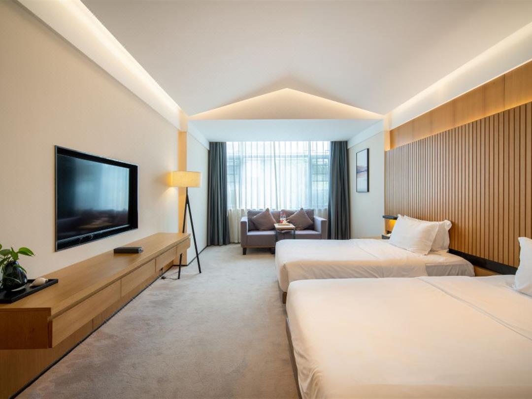会议设施适配小型商务活动,环境雅致。休闲娱乐设施依托临湖优势,湖岸区域可散步赏景,园林景观区适合慢游放松。此外,酒店还提供健身相关设施,结合每日健身功法早课,为住客打造健康度假场景。