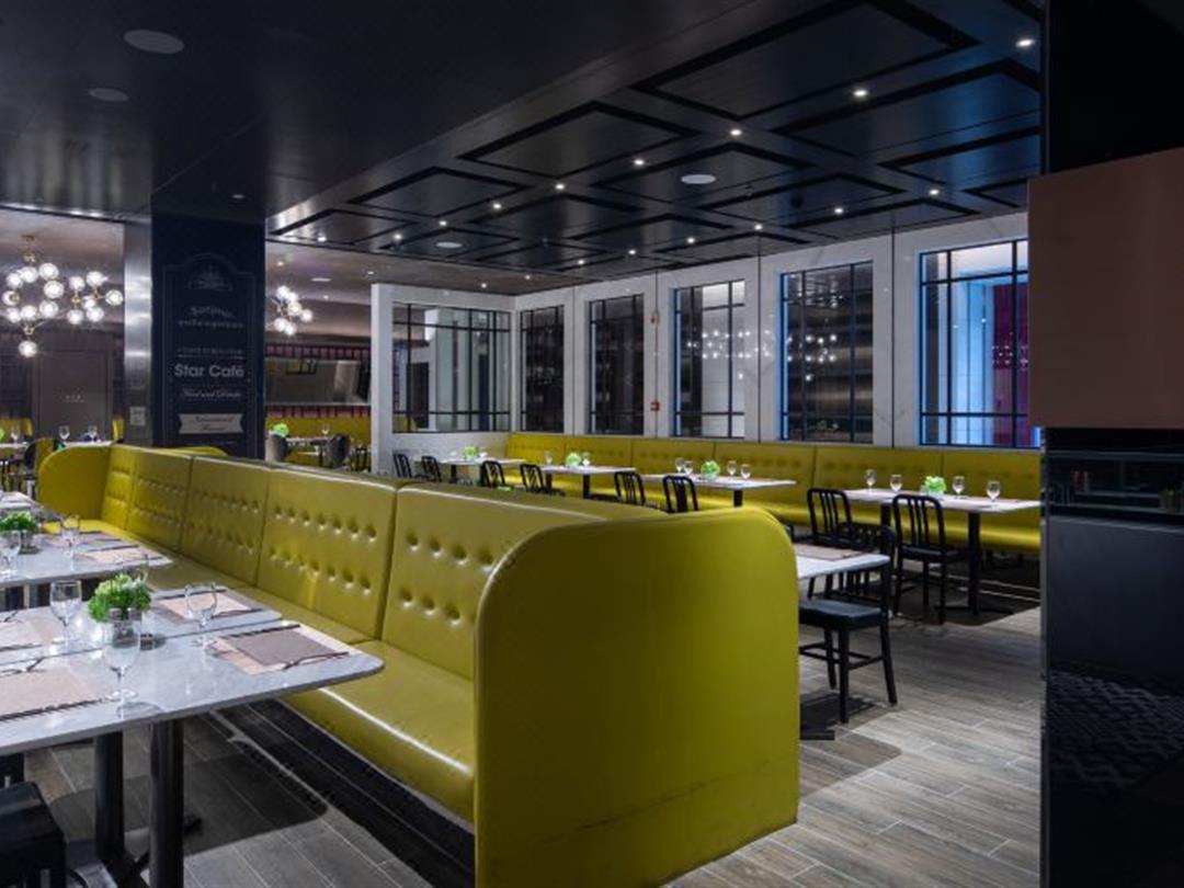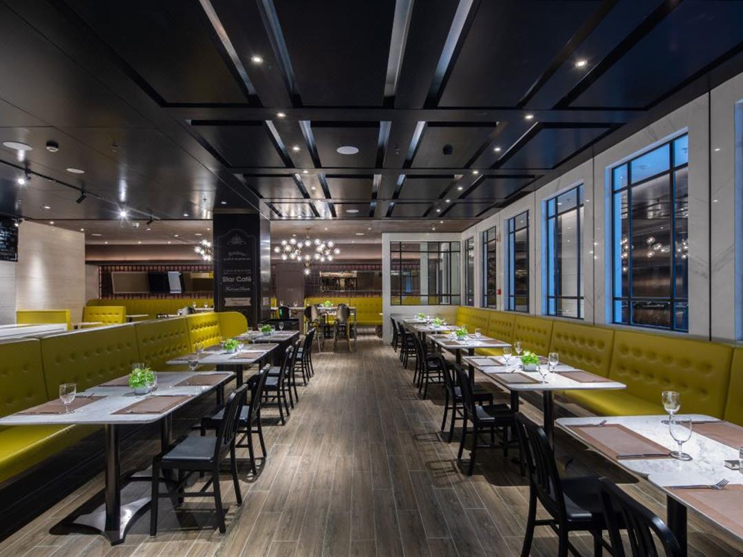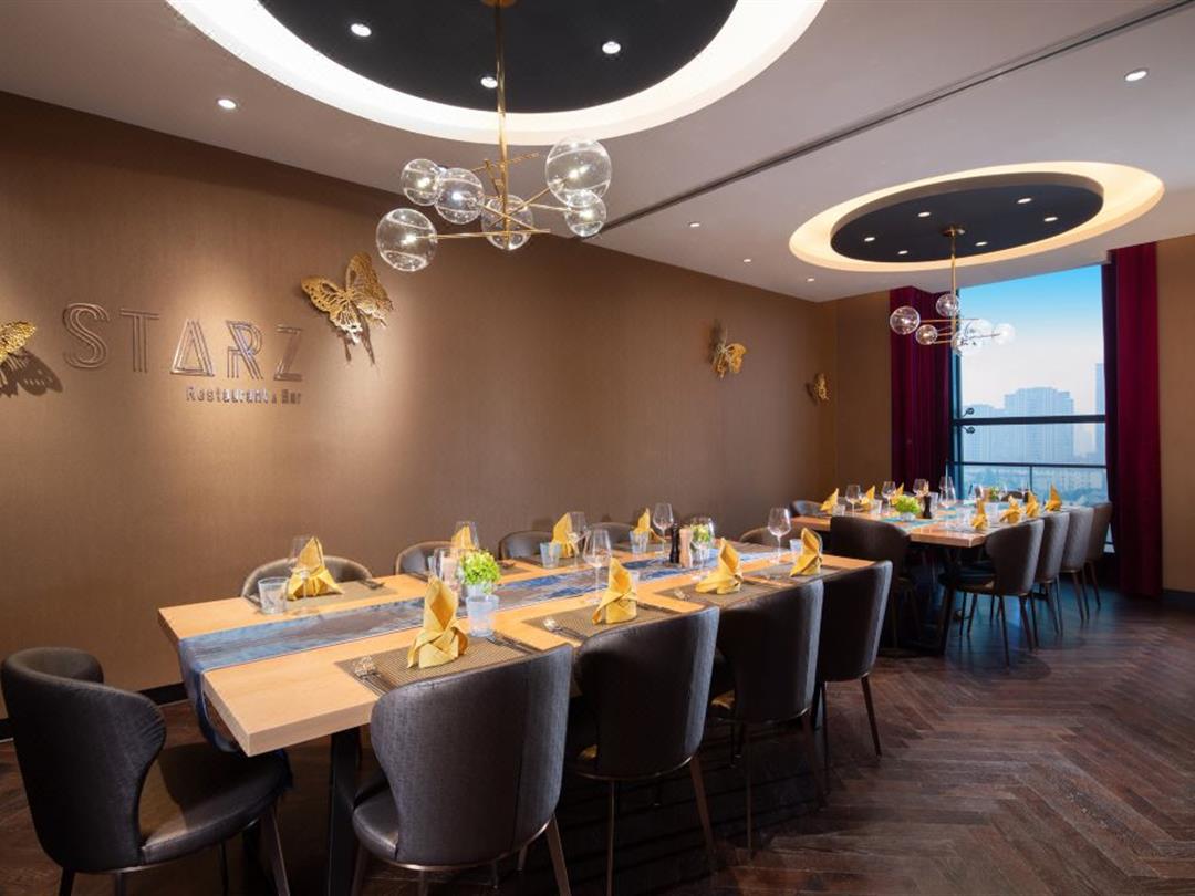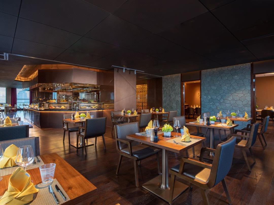 坐拥优越的地理位置、全景落地窗景观,您可在用餐的同时纵享城市风光,作为全开放式厨房和厨艺秀的高 档西餐厅,我们拥有精致的菜肴摆盘,兼具美式风格牛排及新鲜的肉类烧烤。是美食爱好者的天堂。