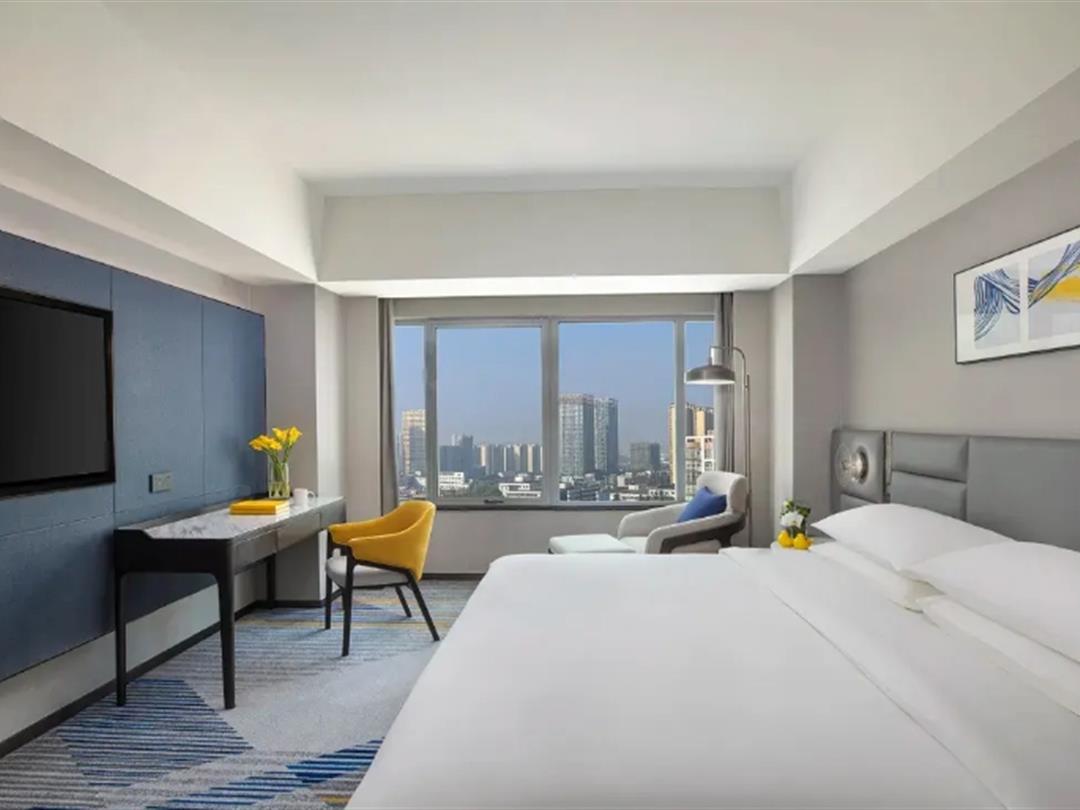 酒店拥有368间现代风格客房及套房,度假空间阔绰敞亮,面积35㎡起跳,设计上既满足居住所需的舒适和质感,又兼具典雅的时尚气息,推开窗即能看到常州唯美夜景。