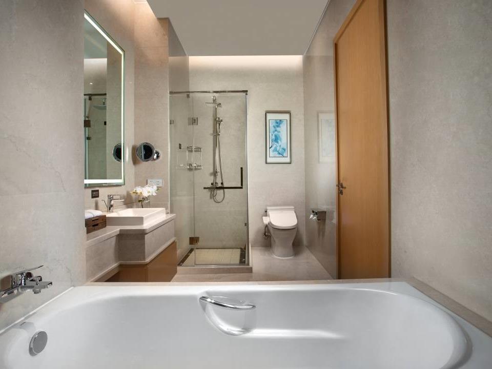 客房浴室干湿分离,浴缸与淋浴房隔开设计很不错。