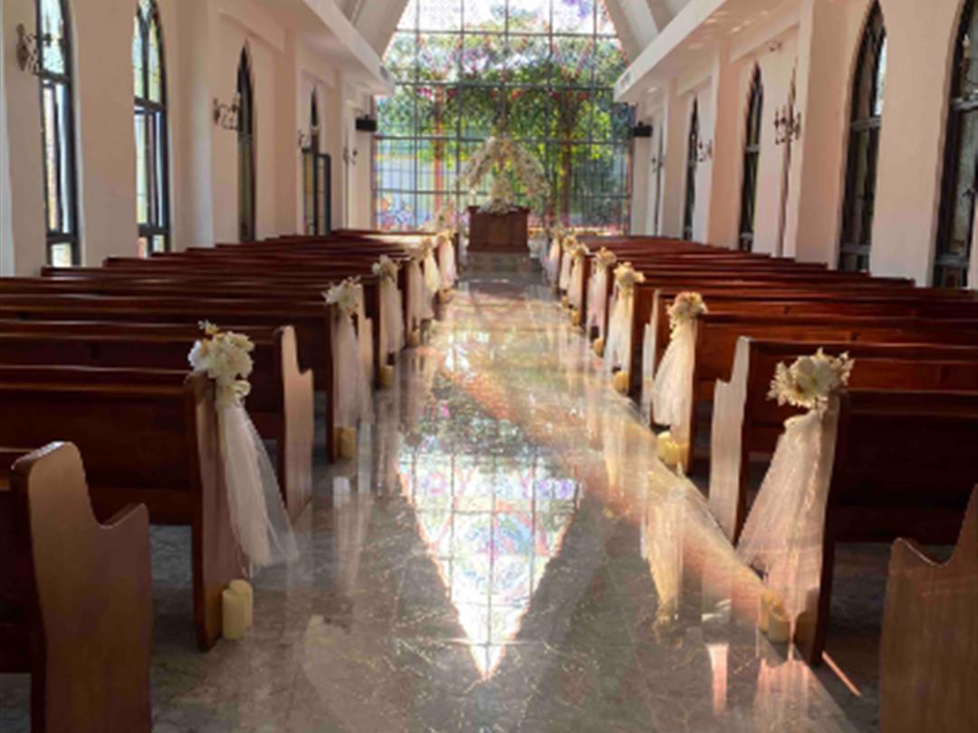 阳光折射出的七彩琉璃光,洒满在这浪漫的礼堂。无论你衣着波西米亚风、哥特风、jk、法式白裙还是干练行政装、休闲T配牛仔裤,均可在礼堂里秒出大片。