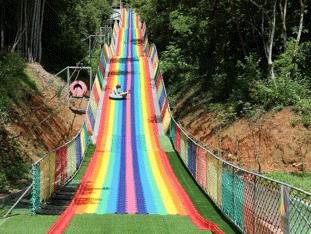 来到丛林飞跃环节,锻炼四肢平衡感,来点心跳加速的游乐项目才不枉此行呀。丛林飞跃游乐项目,分蓝线跟红线,选择一条适合自己的路线。踏进丛林中,抬头见鸟儿在头顶飞过、低头即刻聆听山间小溪流淌声,目之所及皆是树林。来一波丛林探险吧!走起!