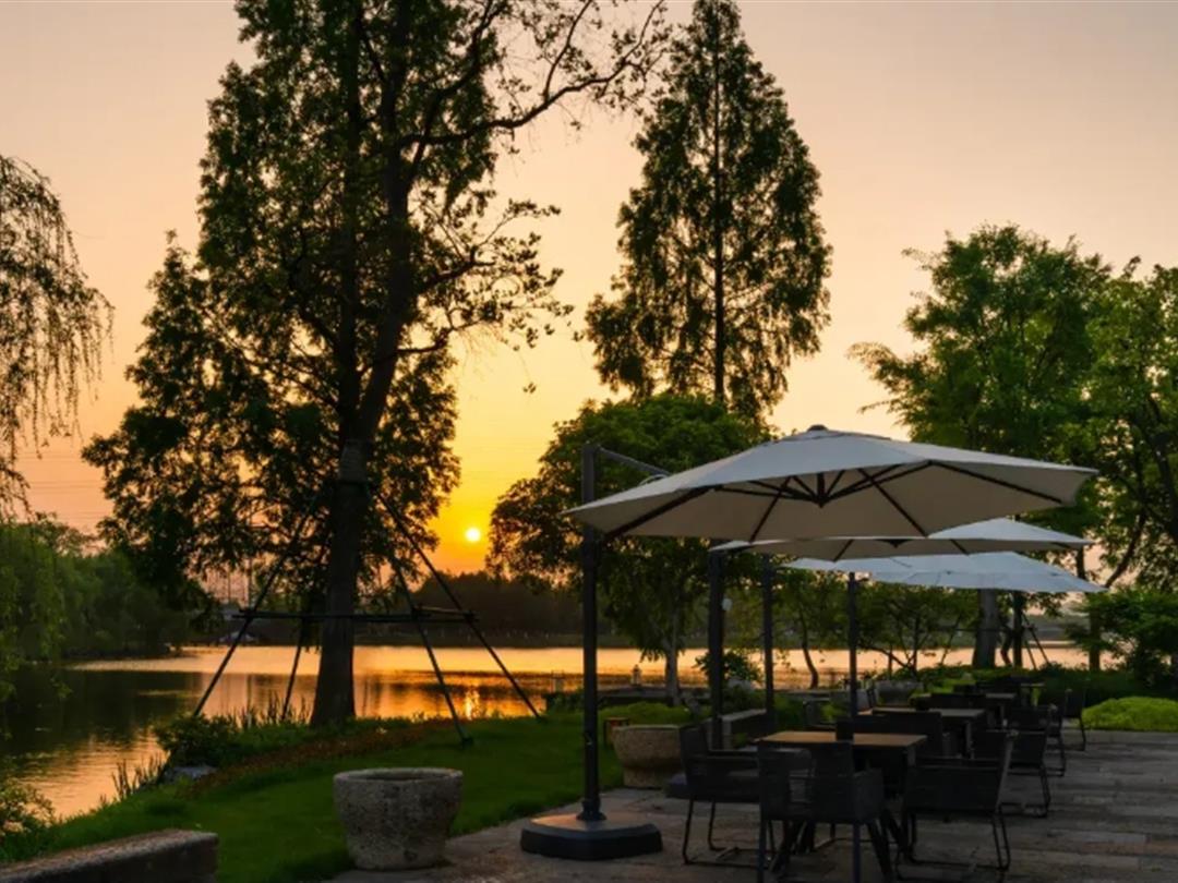 创始人把酒店安放在鉴湖旅游度假区的核心位——柯桥海山村(近绍兴柯岩风景区),被270°湖光山色环绕。