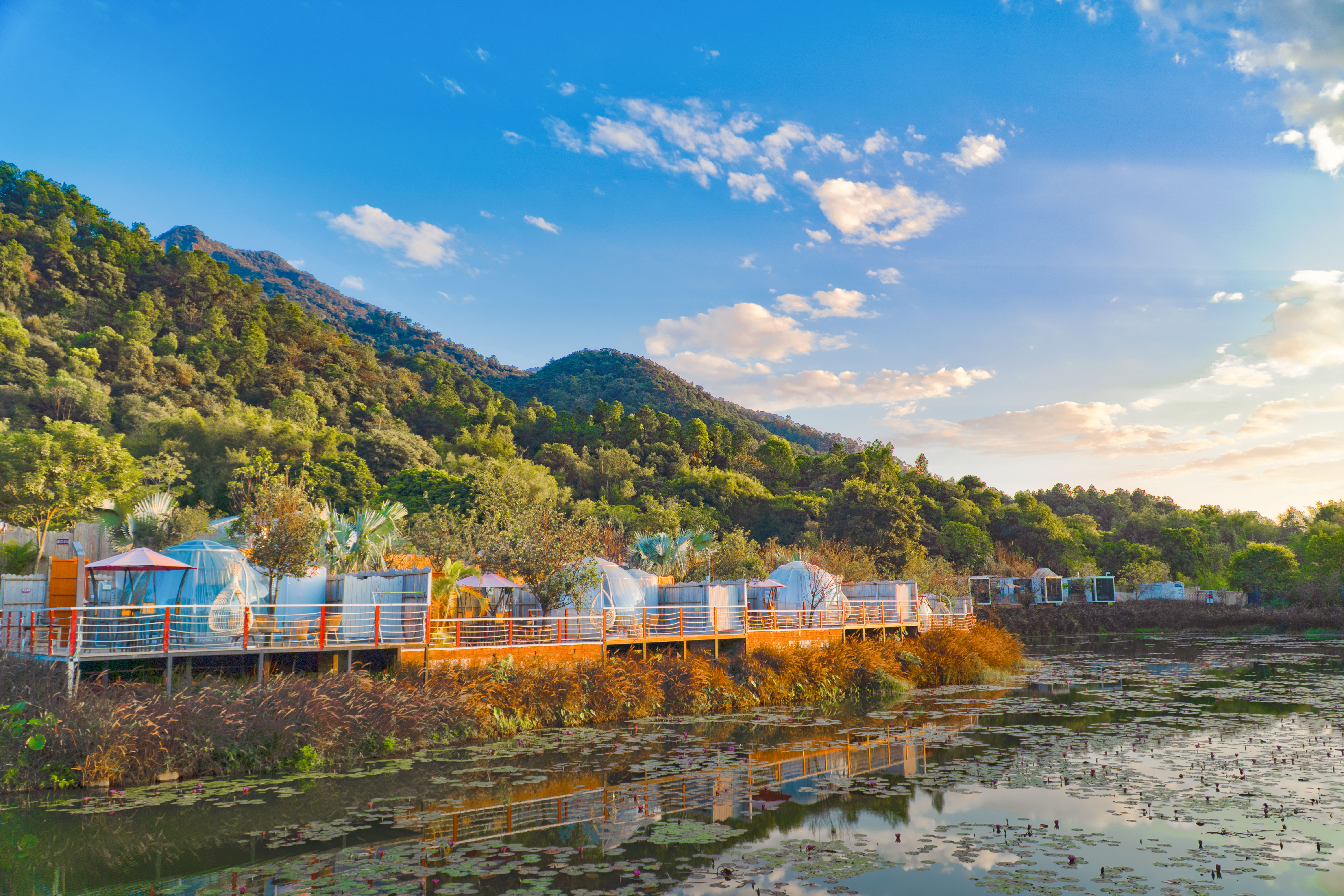 晨起可观山听风、欣赏日落,白天可在度假村的大草坪上嬉戏、玩耍,夜晚在院子内品茗阅读、观星赏月