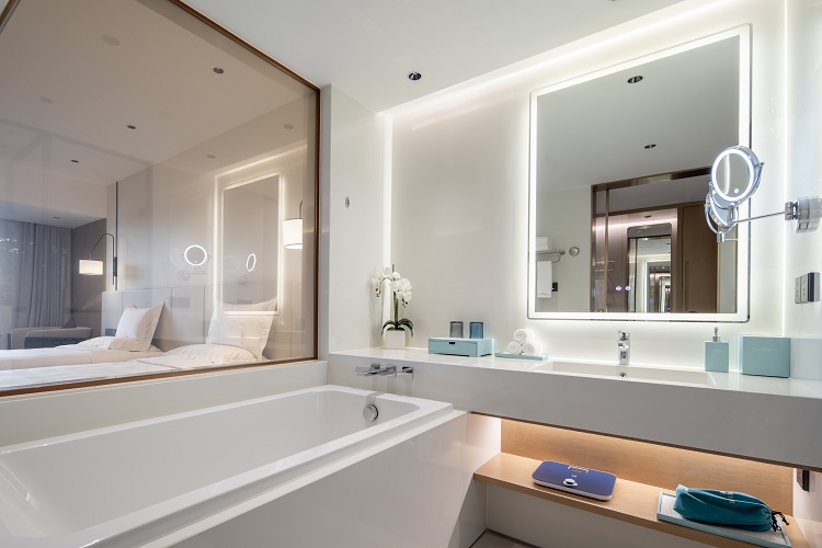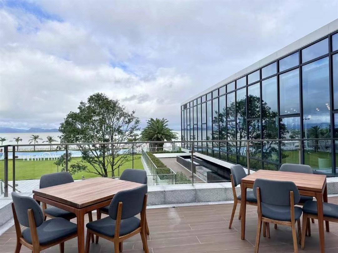 落地窗外的海域一片澄澈蔚蓝