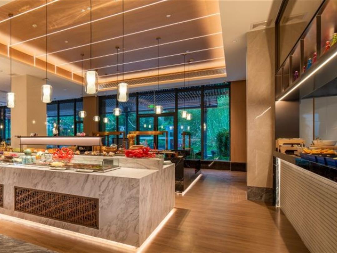 位于负一楼的亭苑全日制餐厅,可容纳近百人自助用餐;酒店外部更有300平方米的场地可供团建互动或露天烧烤,专业厨师团队致力于将烧烤文化与本地特色餐饮相结合,打造南昆山最有烟火气的餐厅,既能感受山间清新之风,又能品尝地道美味佳肴。