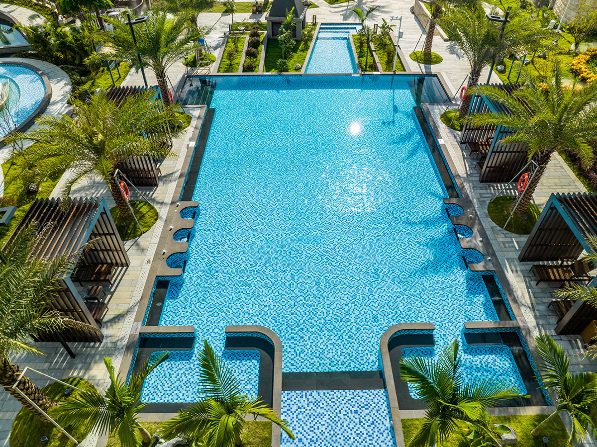 为了良好的水质卫生,恒温泳池及无边际泳池下池必须佩戴泳帽,上岸时必须穿着拖鞋,防止滑倒受伤;