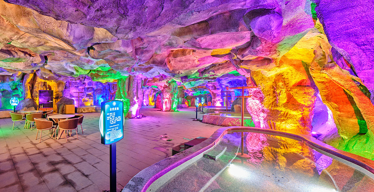 温泉区分为南昆山特色区、药浴养生区、 水疗活力区、秘境溶洞区,共计50个温泉泡池