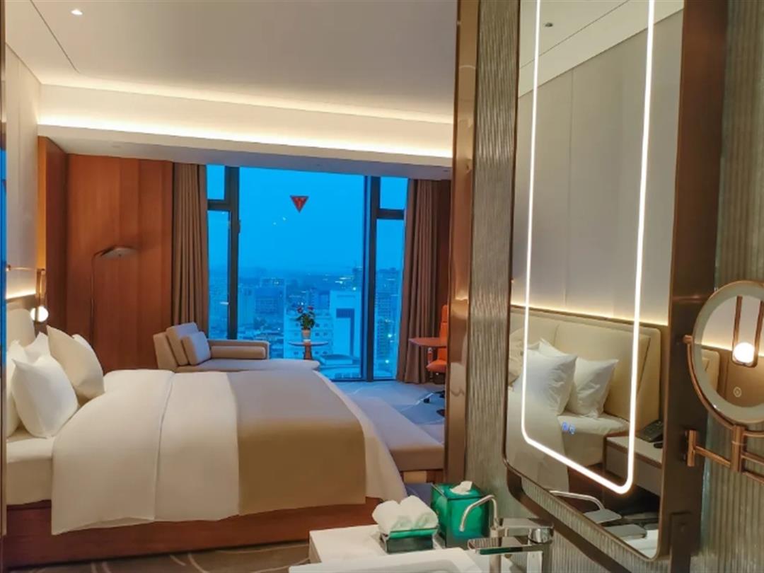 拥有351间宽敞雅致的客房和23间大气时尚的中餐包厢,酒店主楼设有空中餐厅等酒店特色服务配套,还配套宴会厅、多功能厅、空中特色餐厅、中餐厅、会议室以及沿街商业店面等。