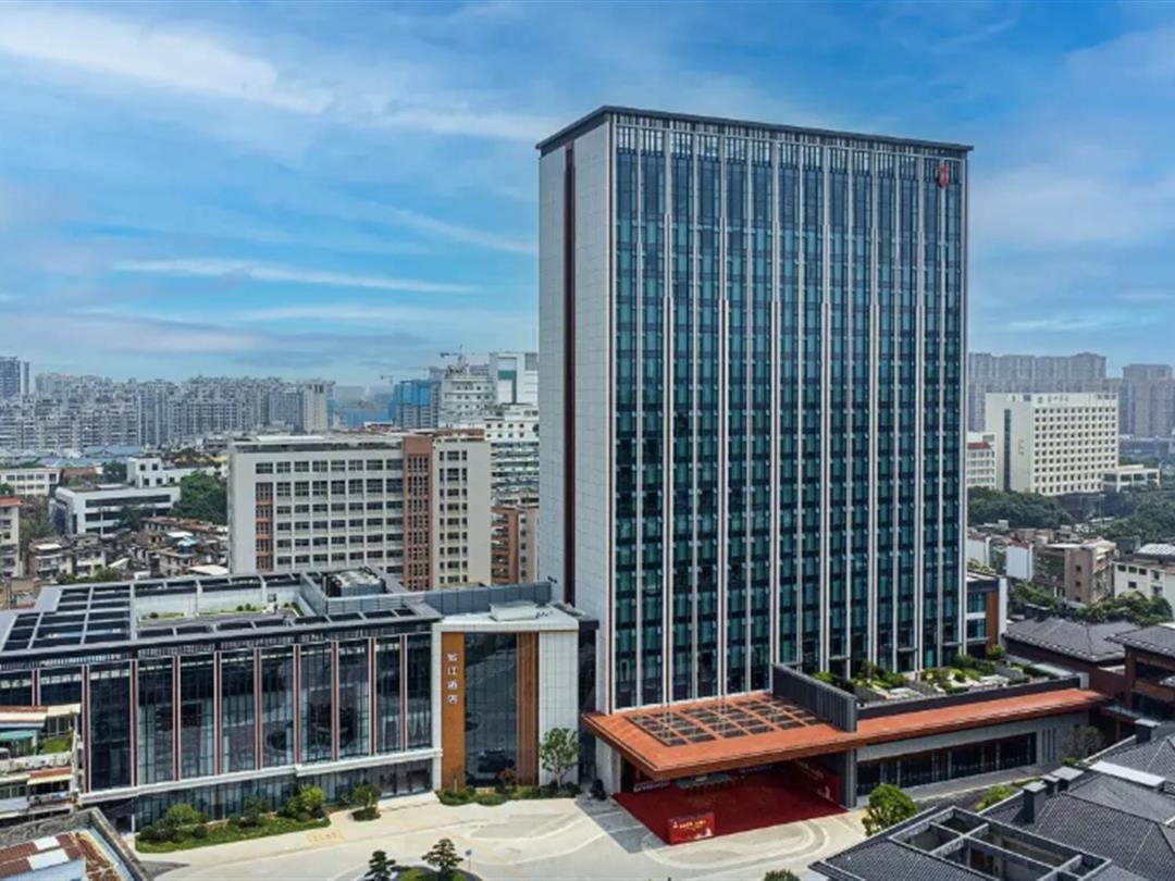 2020年,以漳州老城区标准性建筑和高端酒店商业综合体为定位,融合闽南特色文化元素,酒店投资14.6亿元进行重建提升。新建成的芗江酒店总占地面积约36亩,总建筑面积约90582㎡。
