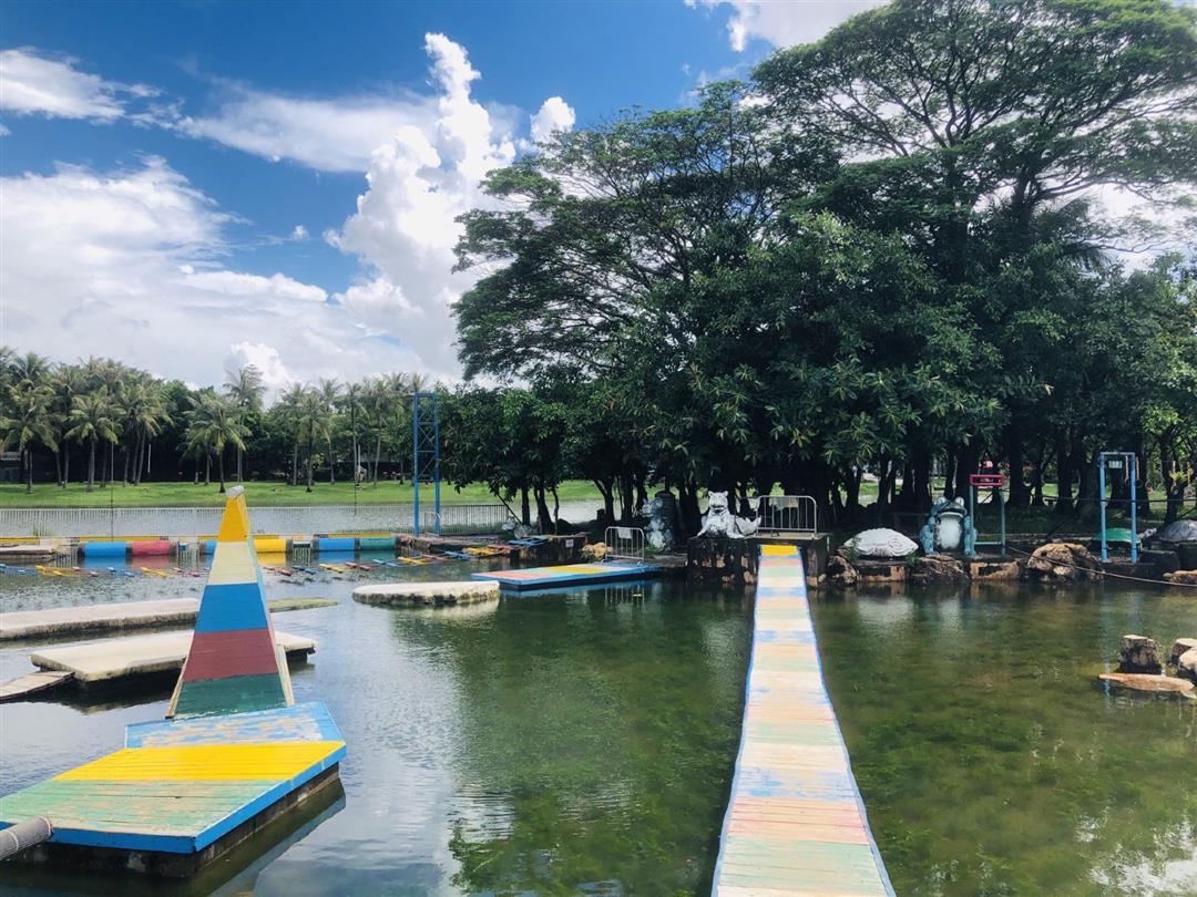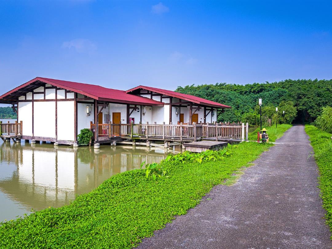 水上竞技场含独木桥、平衡木等免费挑战项目,电动游船可泛舟芦苇荡;