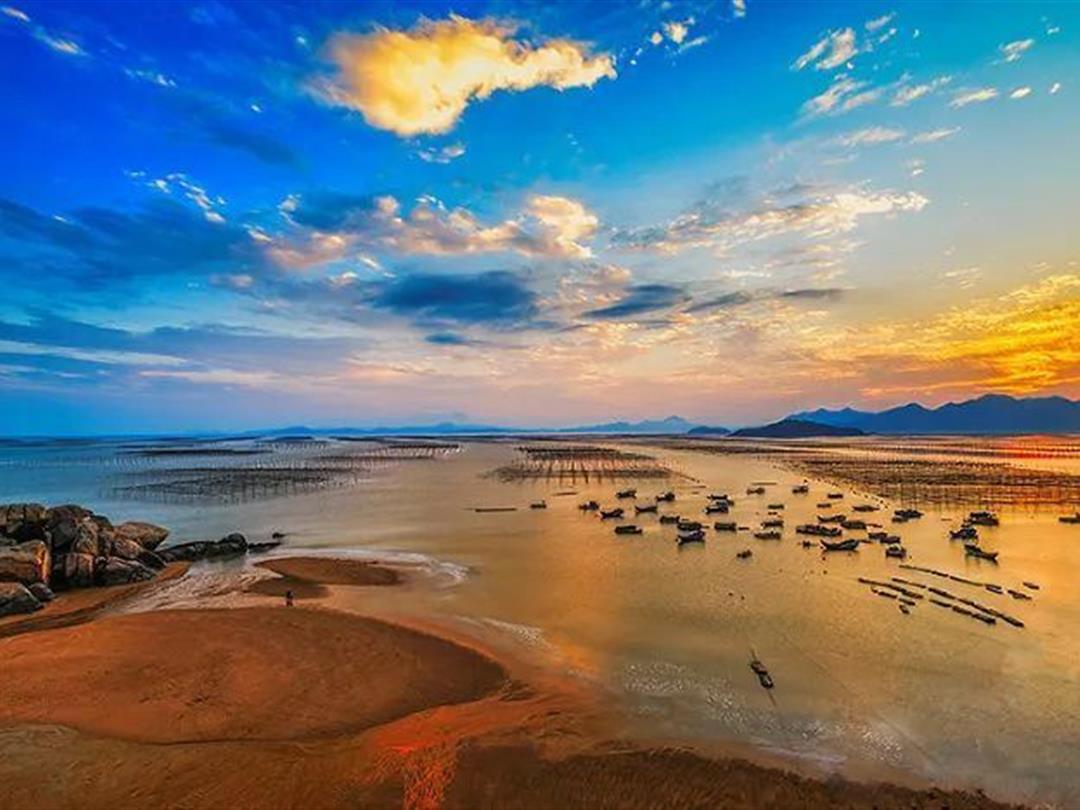湿地观景塔可俯瞰红树林、芦苇荡等全景,日落时分景色尤为壮美。