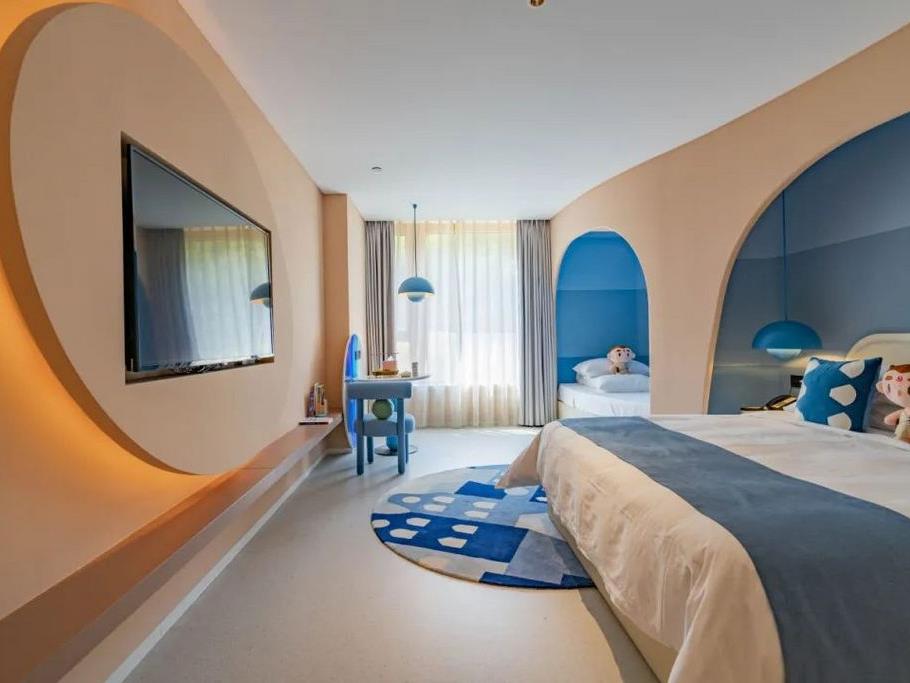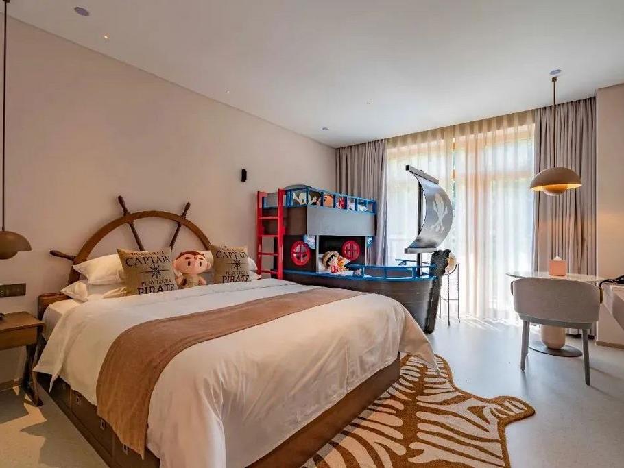 住在酒店,不去景区也能玩嗨,大人有健身房、冥想室、书吧,小孩则有儿童乐园、DIY室,及室外5大功能区,可以满足不同年龄段住客的需求。