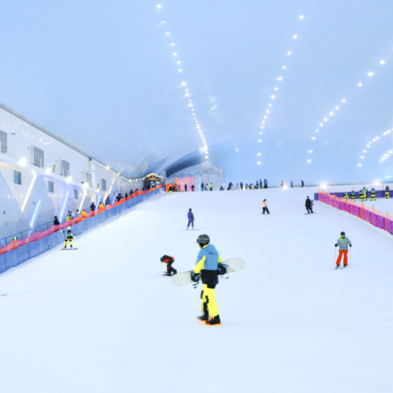 雪场有初级道、中级区和高级区,高级区雪道总长100米,雪场温度保持在-3°至 -5°,带给你真实刺激的滑雪体验