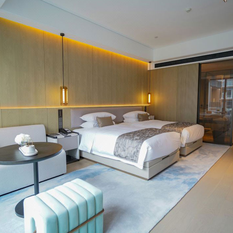 客房装饰主调以淡灰色、深棕色为主,布置淡雅,呼应自然环境,彰显科技潮流中的时尚美学。配备各类客房156间:除大床房、双床房之外,增设了家庭房、豪华房、总统套房等多种房型,为不同需求的客人提供了更多选择。位于3-8楼,部分房间更带有独立阳台或露台等。