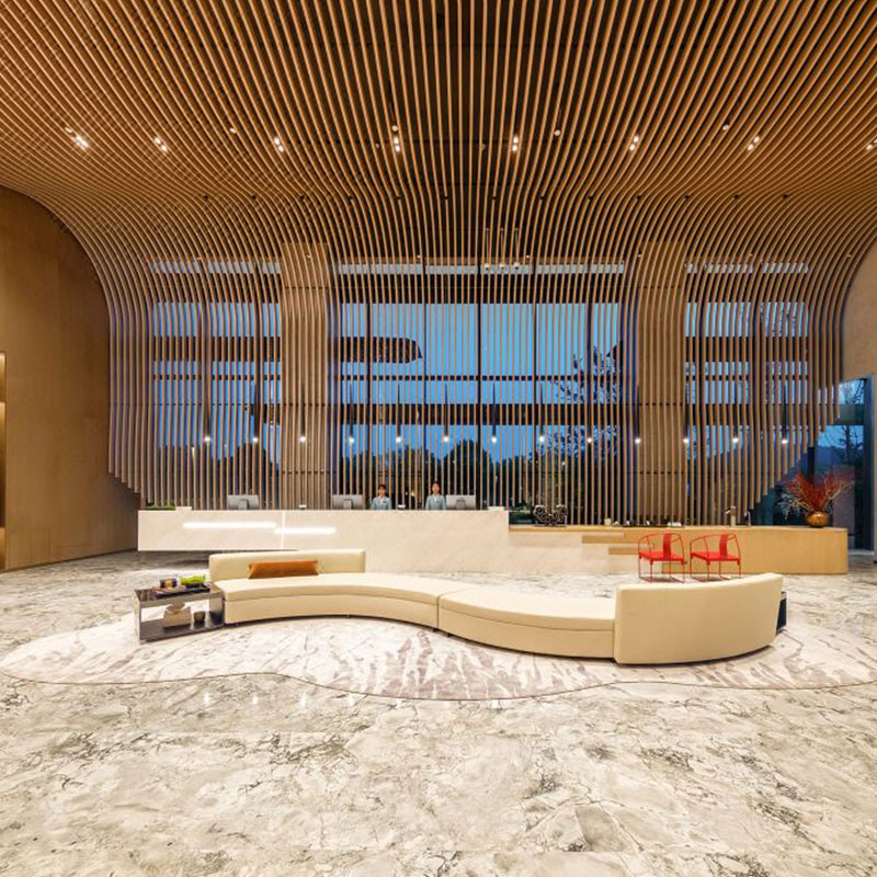 酒店整体装饰取自湘湖「行舟」「湖水」「远山」等元素,