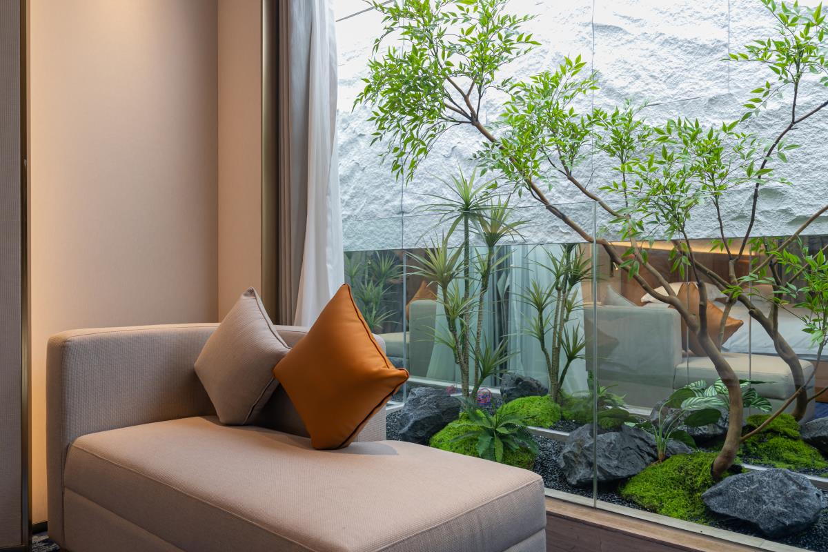 殿堂设计元素极具亚洲现代时尚风格,以大自然绿色花园休闲空间为主题,典雅、别致、温馨、缤纷热情……