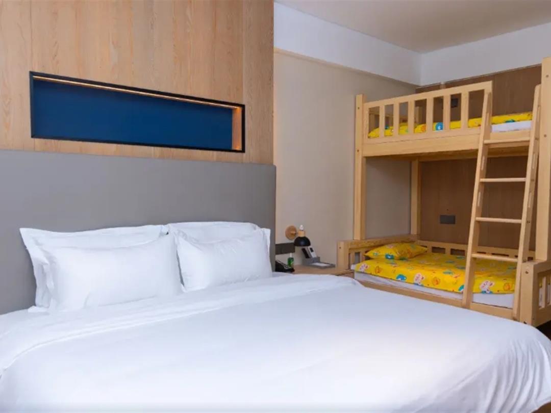 带娃选手来易安悦酒店一定错不了,易安悦毗邻风光旖旎的眼明泉、绣江河公园,绿林环绕下带孩子与鲜氧生活零距离。酒店一楼童趣游玩区配备小型滑梯、旋转摆锤、卡通汽车等多种儿童游玩道具。一走进这片小小游乐场,小朋友们将迎接一连串的惊喜和冒险,而家长们也能在笑声中找到心灵的安宁。儿童就餐区是独属儿童的一方小天地,适配小朋友身高的木桌,搭配小羊角设计专属座椅,给孩子提供舒适的就餐环境。上方悬挂的超大月球灯,牢牢抓住“小孩哥”眼球。走进易安悦在孩子欢笑的旋律迎来一场充满色彩的游乐之旅!