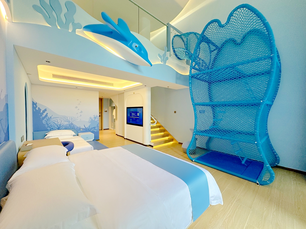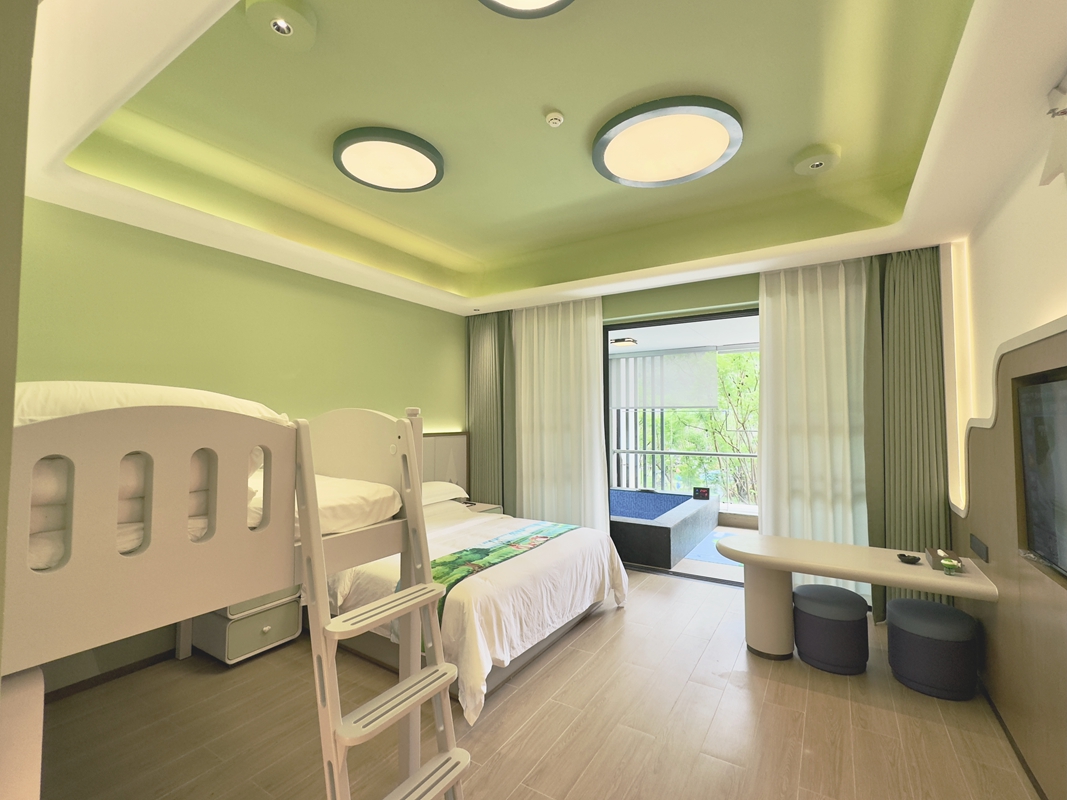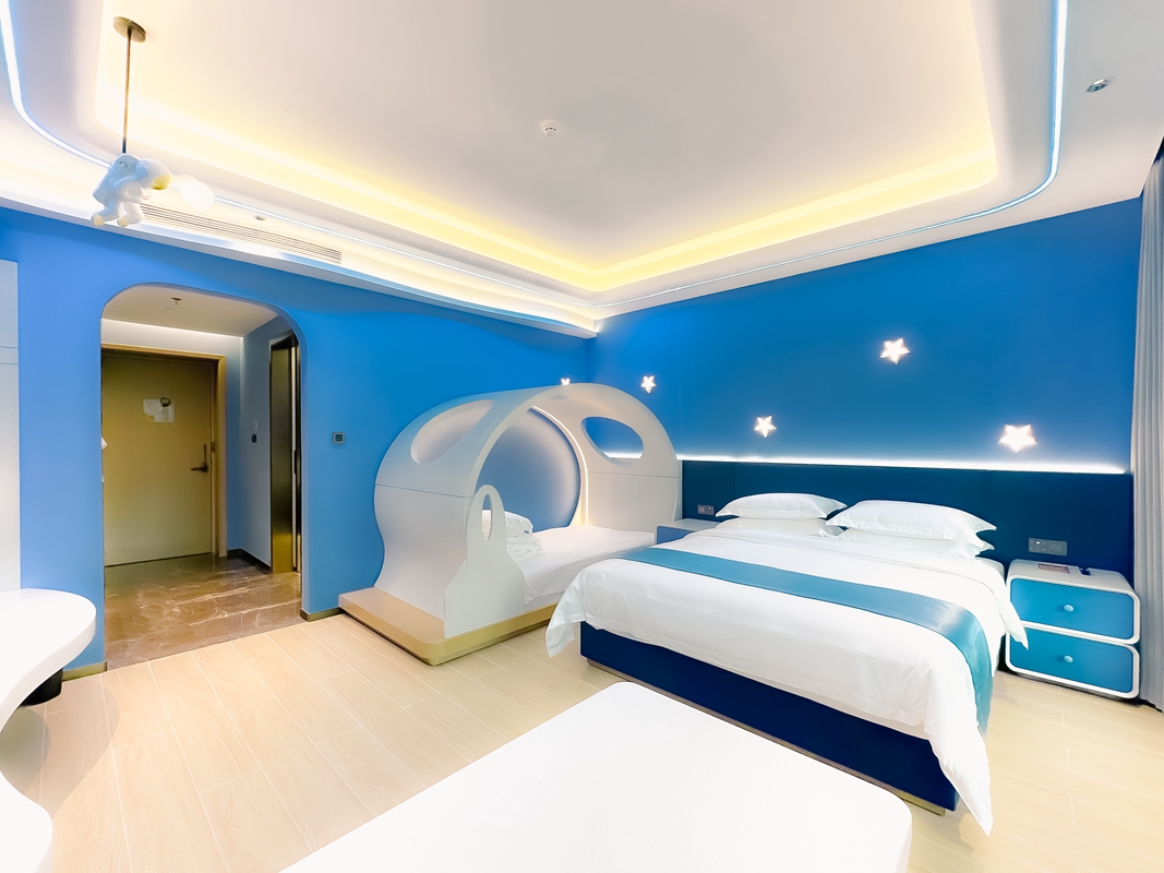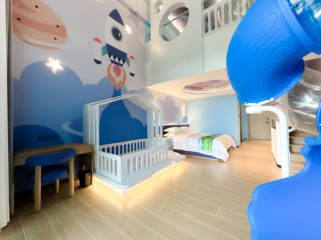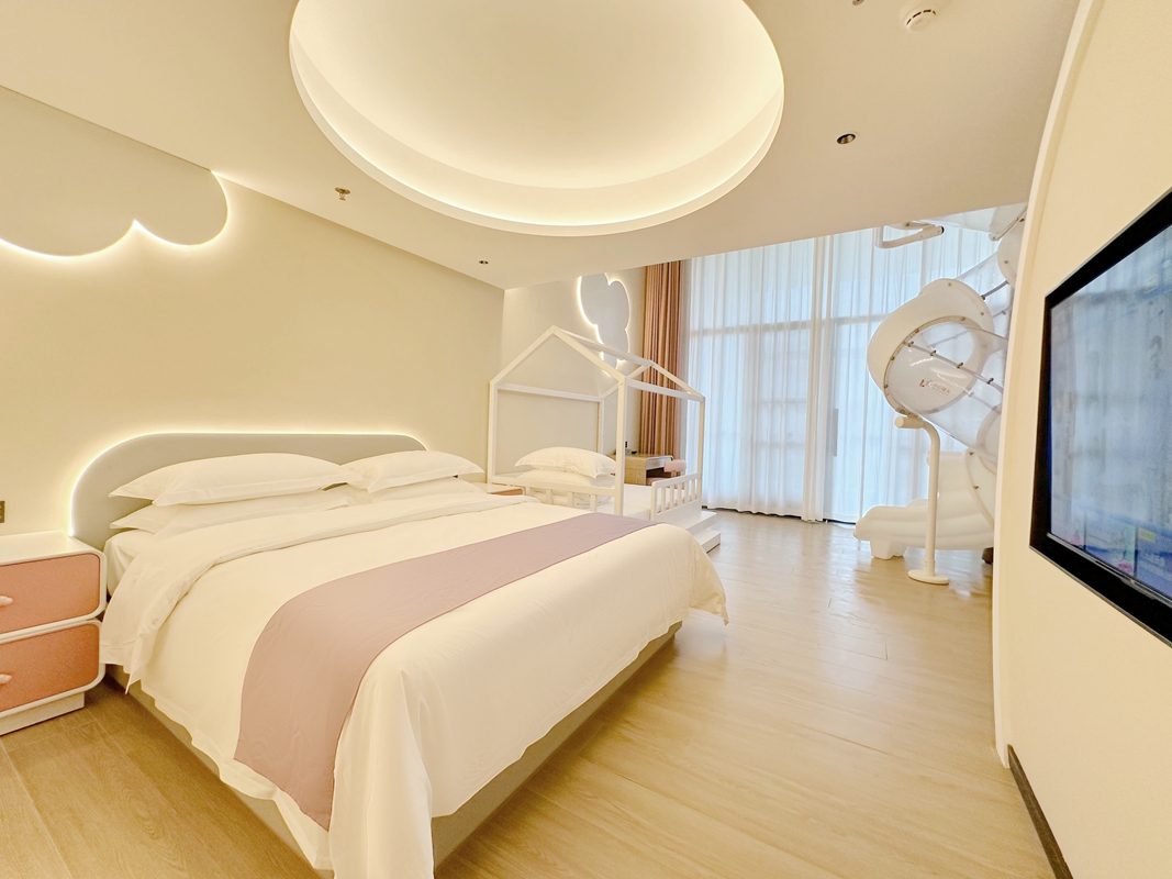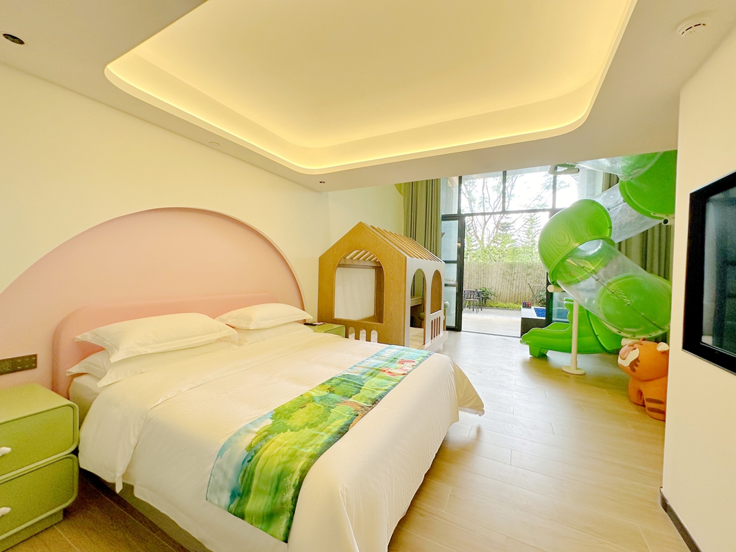 森波拉度假森林2024年倾力打造的又一高端亲子主题酒店,共有客房200多间,房型包括套房和LOFT、度假别墅,客房设计风格融合漫夜星空、森林奇遇、宇宙探索、魔幻海底、精灵城堡等主题元素。配套有温泉泳道、水景观乐园等特色休旅设施和项目,环境精致奢雅、服务贴心,让你沉浸于惬意梦幻的美好度假时光,是省内别具一格的度假型亲子主题酒店。