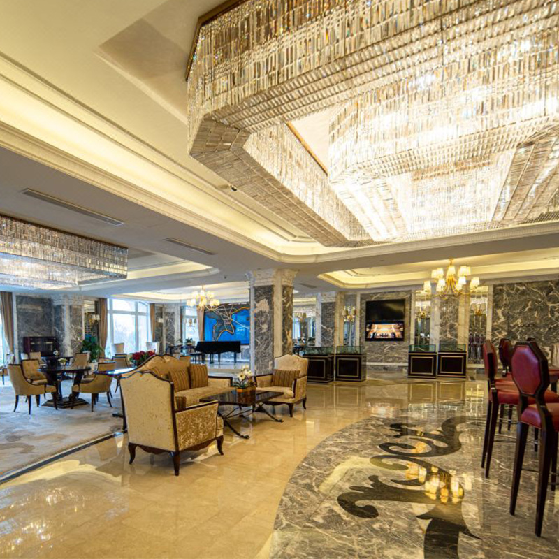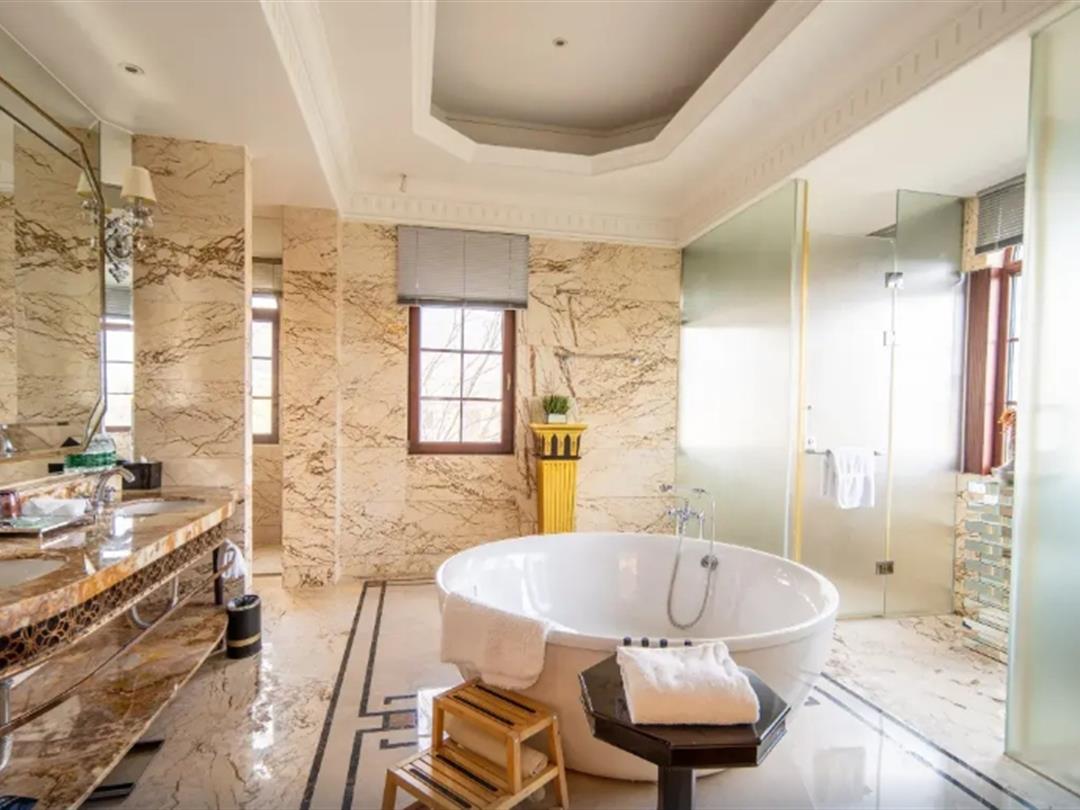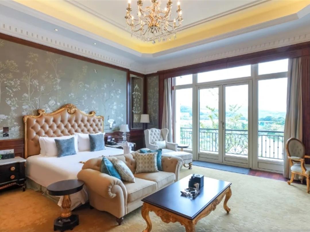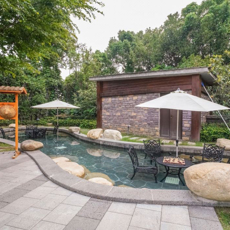 酒店配套设施丰富,涵盖休闲、娱乐与商务场景。休闲类设施包括户外温泉(非天然但环境静谧,水温37℃-43℃)、无边泳池、恒温游泳池、SPA、汗蒸房; 娱乐类有豪华影院、星空影院、红酒雪茄吧、棋牌室、茶室、室外网球场; 儿童友好设施包含室外儿童乐园; 商务类则配备商务多功能会议室、商务中心。此外,健身房、精品店等日常设施齐全,满足客人多样化需求。