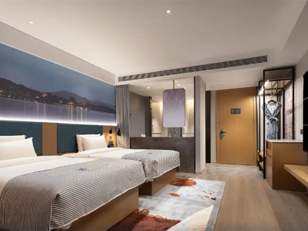 乐活大/双床房布局温馨舒适,宽敞整洁,使用亲肤裸棉及零压床垫,轻享一夜安眠,满足旅途小而美之必要生活。