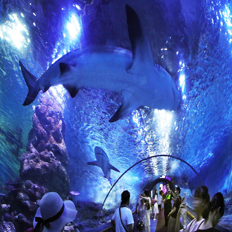 如果您到过厦门海底世界,一定会对长达百米的海底隧道印象深刻。隧道内温度常年保持在26℃,当游客进入隧道,映入眼帘的是成群游弋的“浪人鲹”、威武霸气的“大鲨鱼”、好吃懒做的“巨型石斑”、悠闲自得的“大海龟”等众多海洋生物齐聚一堂,置身其中,仿佛来到“海底龙宫”。