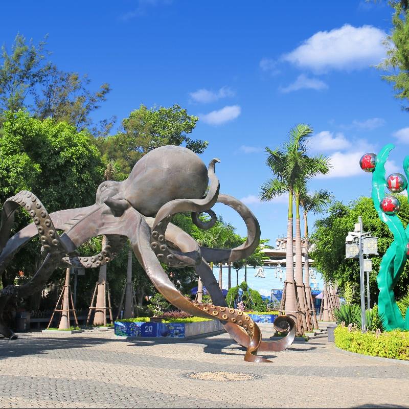 厦门海底世界位于风景秀美的鼓浪屿岛上,距离的钢琴码头只有50米,当您到达厦门海底世界门口就会看到高6米、跨度10米、重6吨的章鱼铜雕,正张开双臂欢迎来自世界各地的游客呢!据说与章鱼铜雕合影将带来好运……