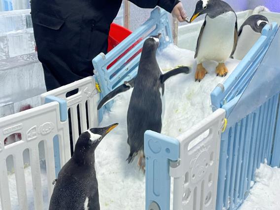 观赏巴布亚企鹅的室内冰雪主题乐园