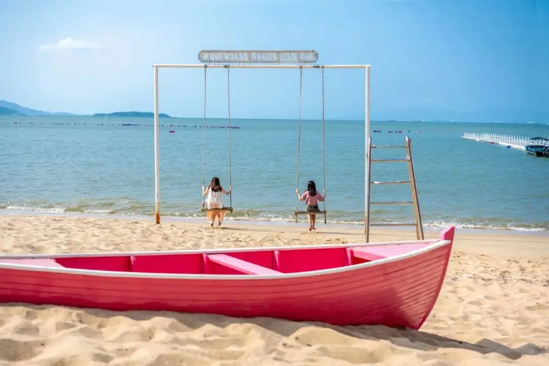 亚婆角沙滩拥有秋千、大型鲸鱼装置等装置