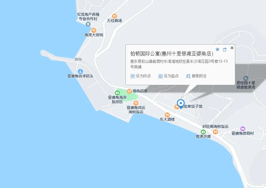 导航:铂顿国际公寓(惠州十里银滩亚婆角店)