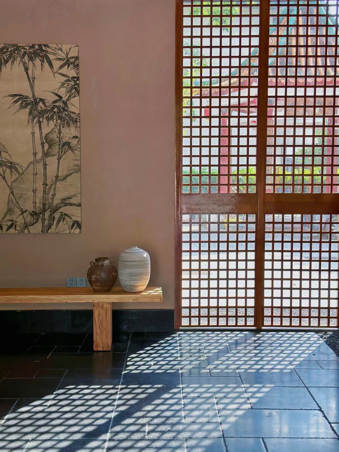 通过落地窗映入眼帘