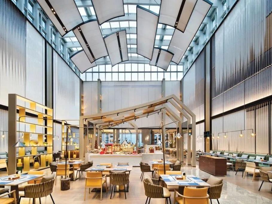 全景透明天窗设计的天幕·全日制餐厅,提供珍馐美味的自助餐,以及全天的零点服务。