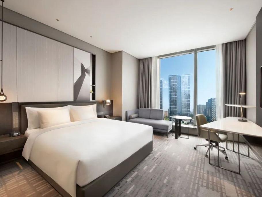 摩登商旅”客房的全新设计理念,以新现代设计风格打造出灵活舒心的私密空间。客房装饰将本地传统文化瑰宝元素巧妙融入都市摩登格调中。如果你是皇冠粉,就会立马感受到与传统"皇冠"不一样的风格调性,更加偏向简约年轻时尚感。