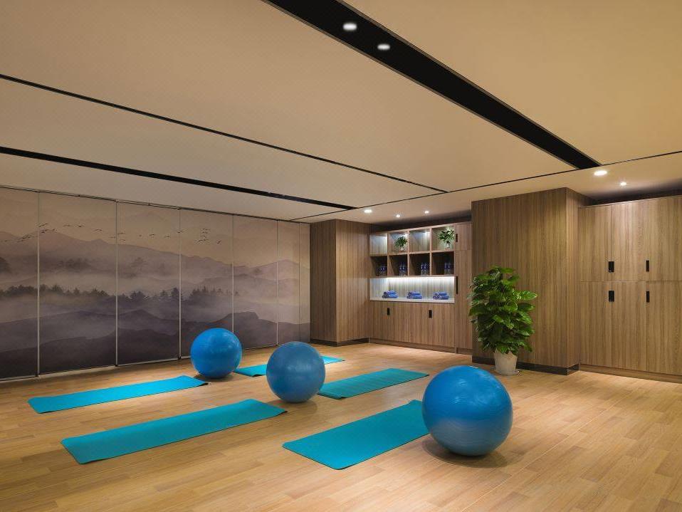 设备齐全的健身房,挑高的全景落地窗,及室内明亮鲜艳的色彩搭配,也从视觉上激发客人准备锻炼的心情。