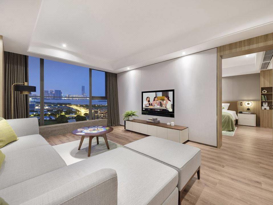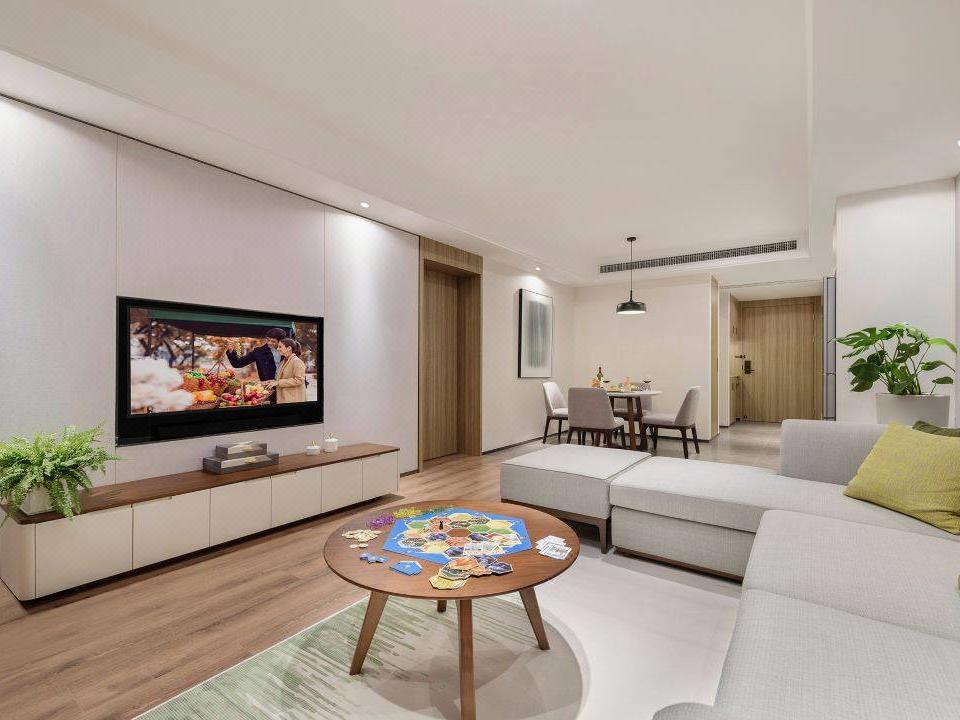 酒店传承了品牌独特“DNA”,特地请来设计团队,汲取太湖当地的湖、山、境等人文特色融入设计,将传统与现代建筑元素相融和,使“和谐愉悦,绿意生活”的温暖氛围渗入到公寓各个角落。