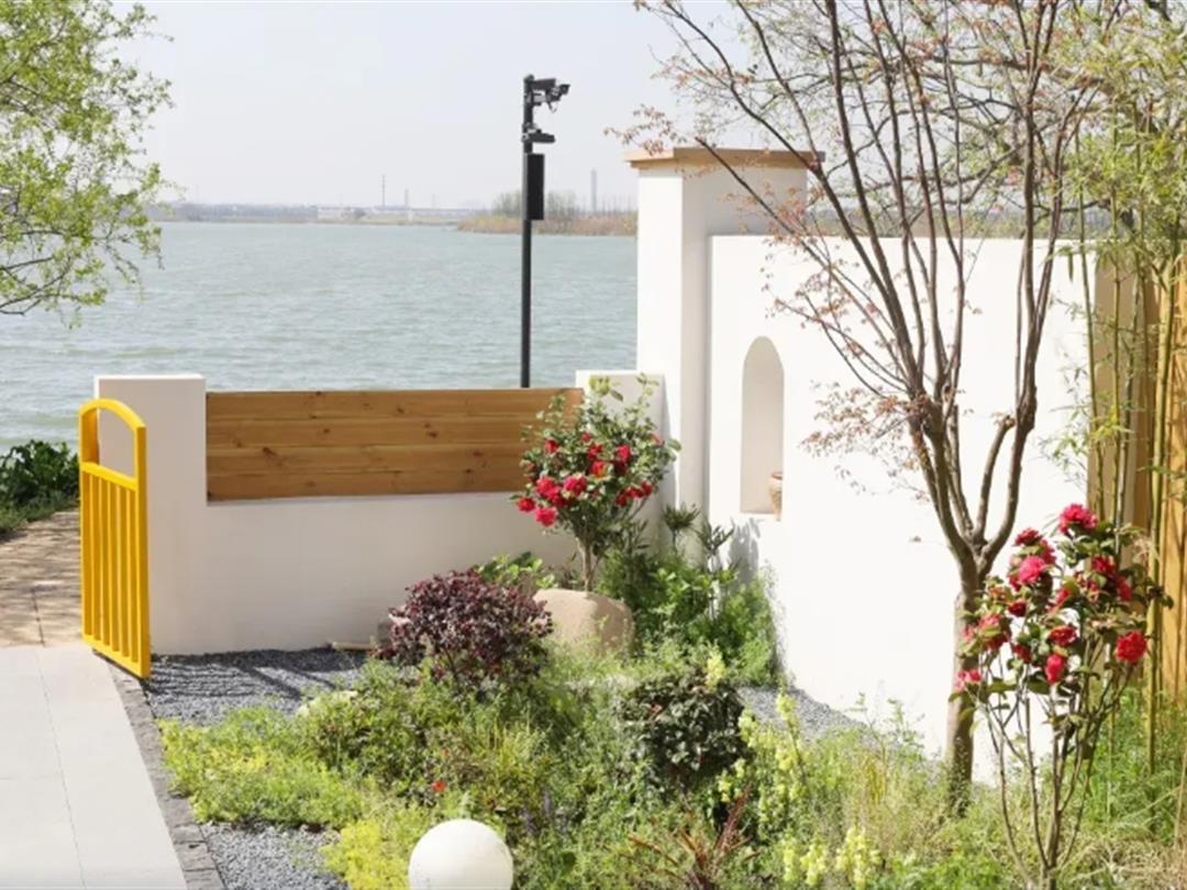 临湖而建,盛夏,水面上黄色、粉色的睡莲竞相绽放,点缀其间,特别生动。