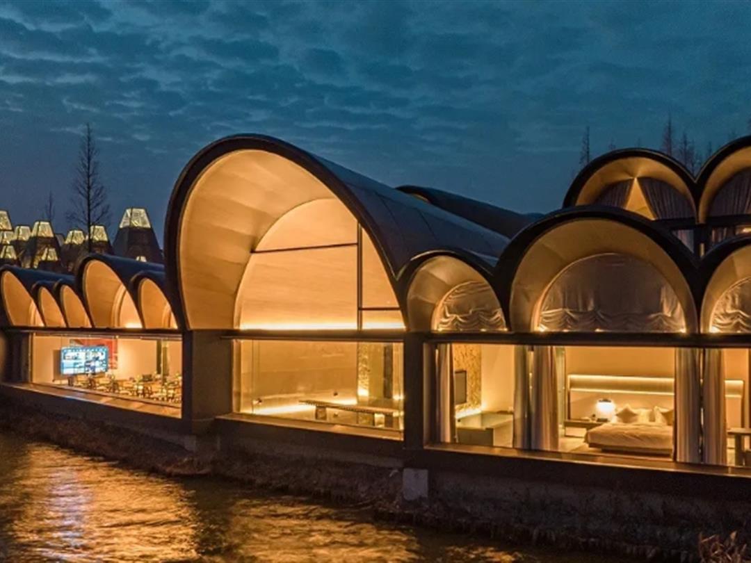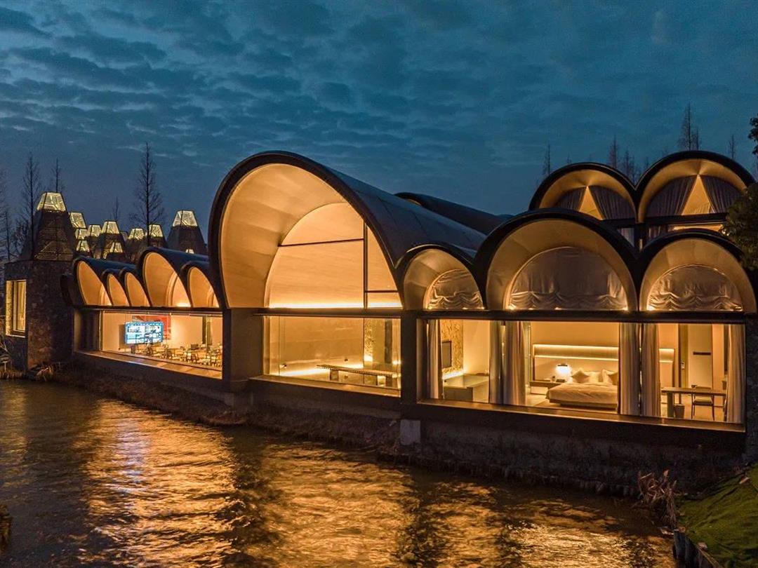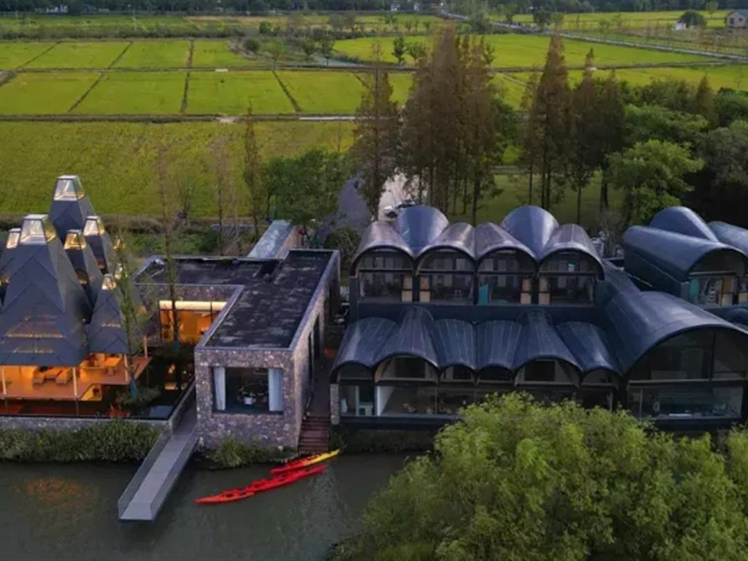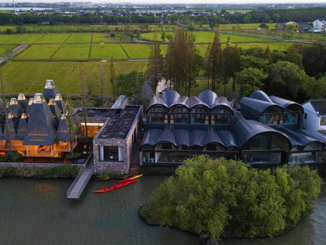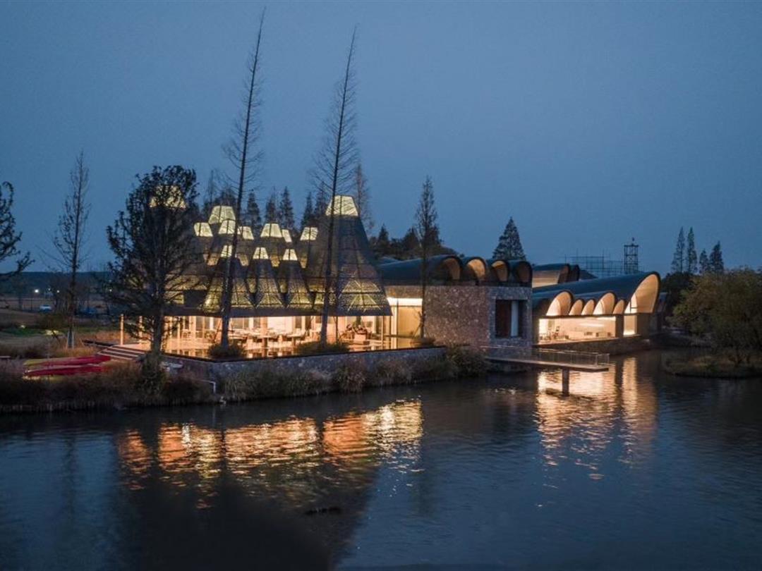 是位于曲水善湾内的一家高端定制餐厅 (营业面积420㎡),在设计中提取了水杉的意象,并转译为抽象的建筑语言,在“众木成林”的灵感之下,通过边界消隐策略,构筑了一道水边的新风景,也为乡村带来了一座崭新的公共客厅。