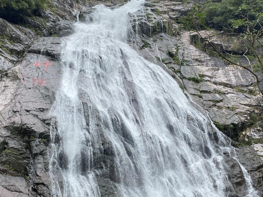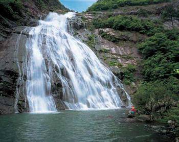 百杖潭距磐安县城安文镇约32公里,以瀑布、潭水、溪流为精华,景区主要由三叠瀑布构成,溪水沿陡崖泄入祈雨潭,三瀑相连,层层叠叠组成别具一格的瀑布体。雨水充沛的季节瀑布的景色更美,夏天来玩感觉十分清凉。