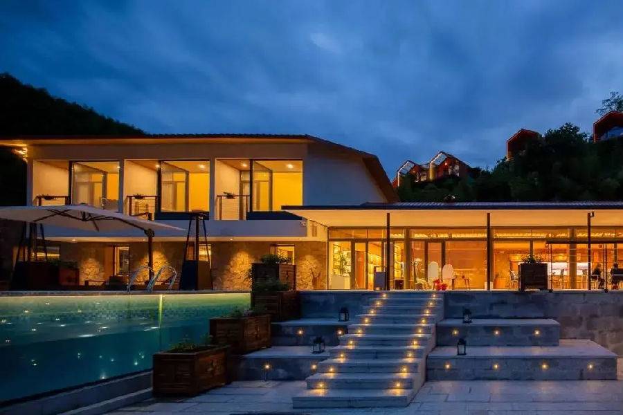 它是占地1500亩的尧舜·养心谷(一个集旅游度假、休闲养生、农业观光、农事体验于一体的旅居度假综合体项目)中对外开放的精品民宿集群板块。