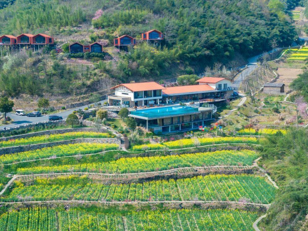 钟情露营的人,可以抢先体验在户外帐篷里度过小时光的乐趣。向往归园田居的人,可以走到酒店主楼下面的梯田内,与果树蔬菜为伴,沿着乡间小径散步,若遇下雨,还能邂逅溪流小瀑。