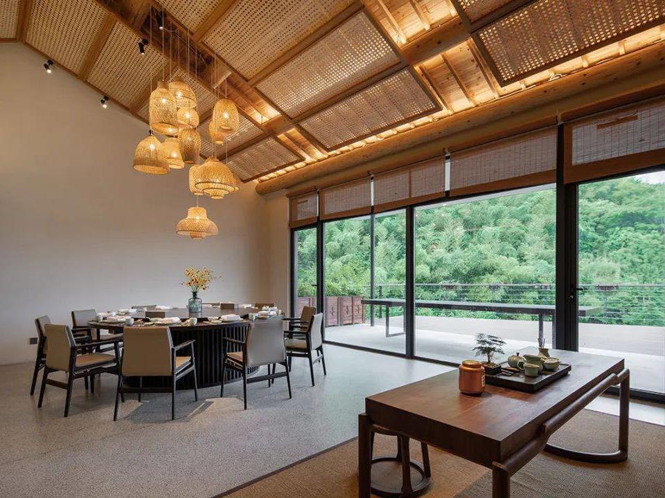 半山腰上的选址,让其从画图设计、开荒修路、动土兴建,到如今被刷爆全网的仙境模样,难度加倍、用时加倍…但也因此,隔绝了车流人往,盘山而上,高耸林木、海海绿竹,庄园式正门仅对住客开放。