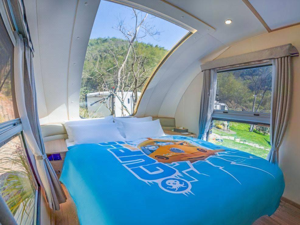 房间不多,但贵在奢+野,客房均享受全屋地暖,每个房间都配有戴森吹风机,胶囊咖啡机。本套餐入住的房型是山野竹林星空房车