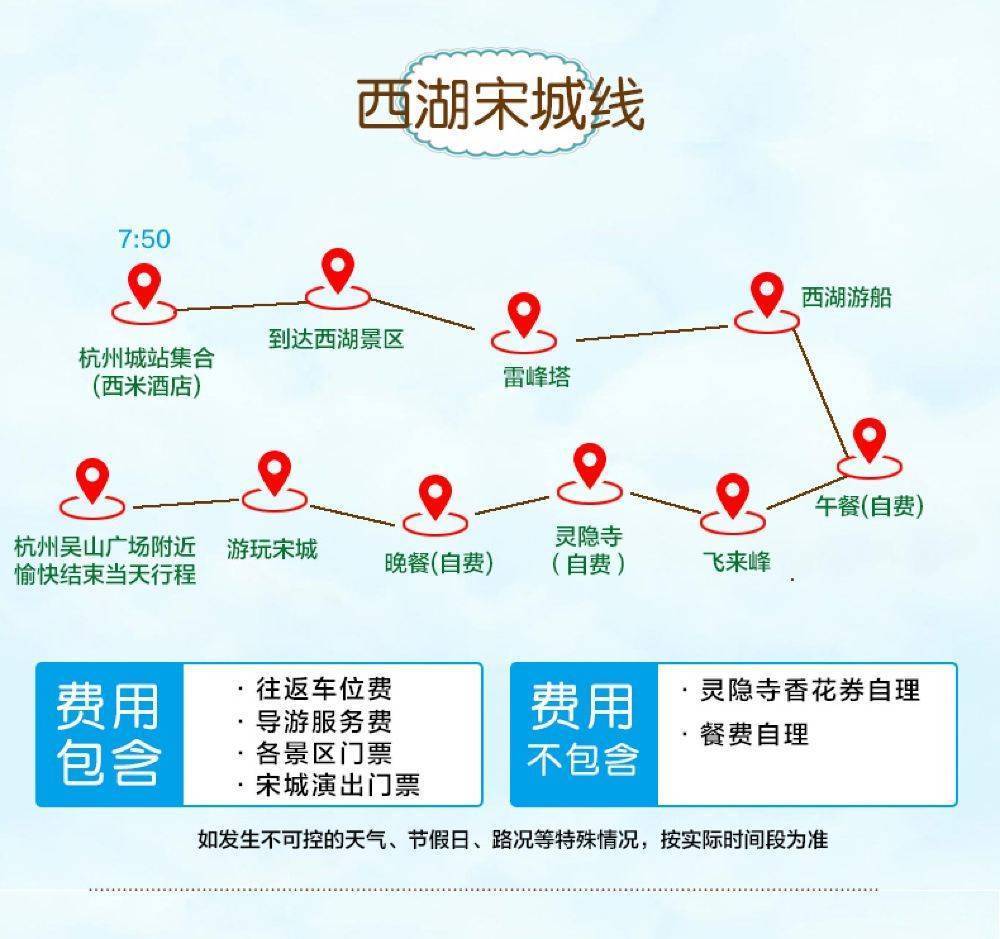 精选好景点:西湖宋城一日(雷峰塔 苏堤 西湖游船 花港观鱼 飞来峰 灵隐寺 宋城 宋城千古情)