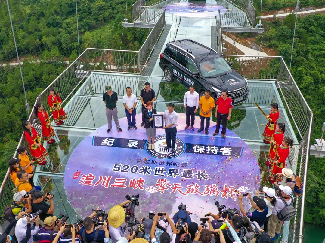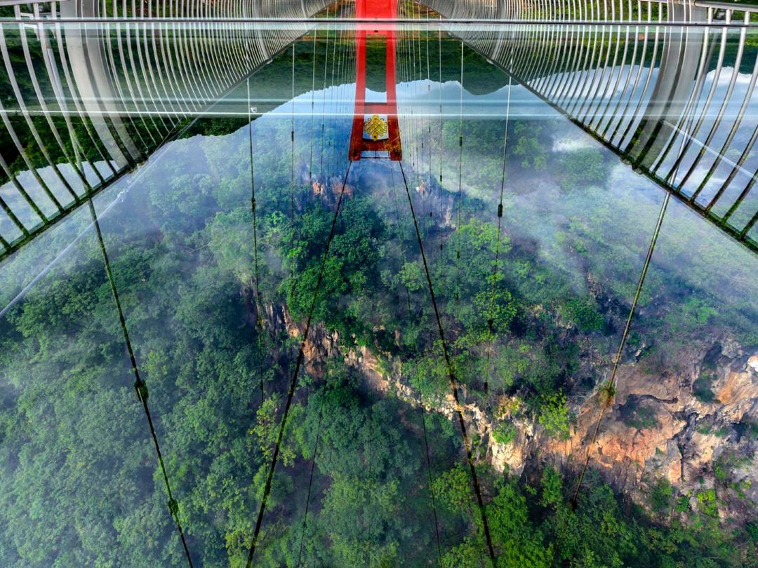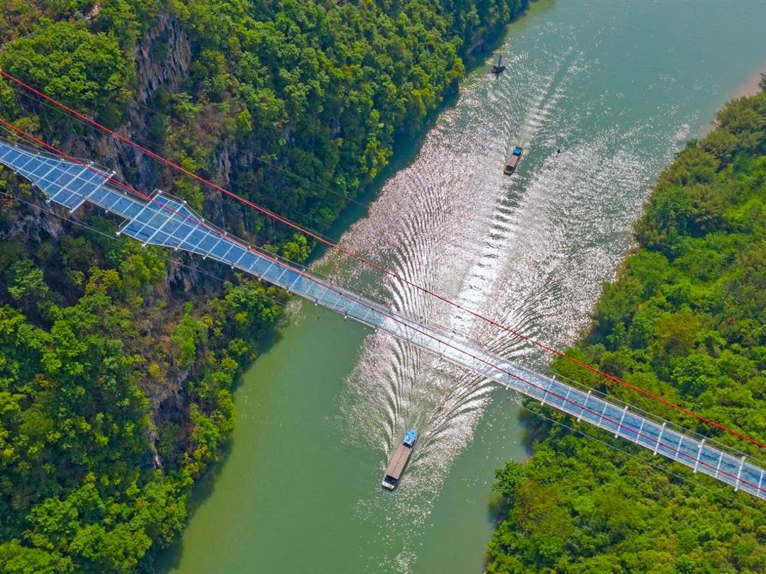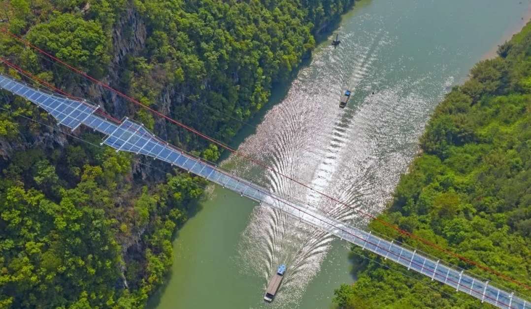 擎天玻璃桥,位于广东省连州地区境内的湟川三峡——龙潭度假区(AAAA级旅游景区)内,具有跨度大、桥面宽、重量轻和梁高低等特点,是一座全透明玻璃的景观桥梁,兼具景区行人通行、游览、蹦极、溜索、T台等多项综合功能。