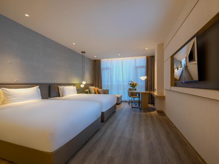 浙江云山蝶来酒店毗邻宁波江北区,坐落在余姚千人计划园区机器人小镇内,建筑外形简约大气,自带辨识度;也因为周边丰富的玩乐配套,让它具备惬意度假的先天优势。