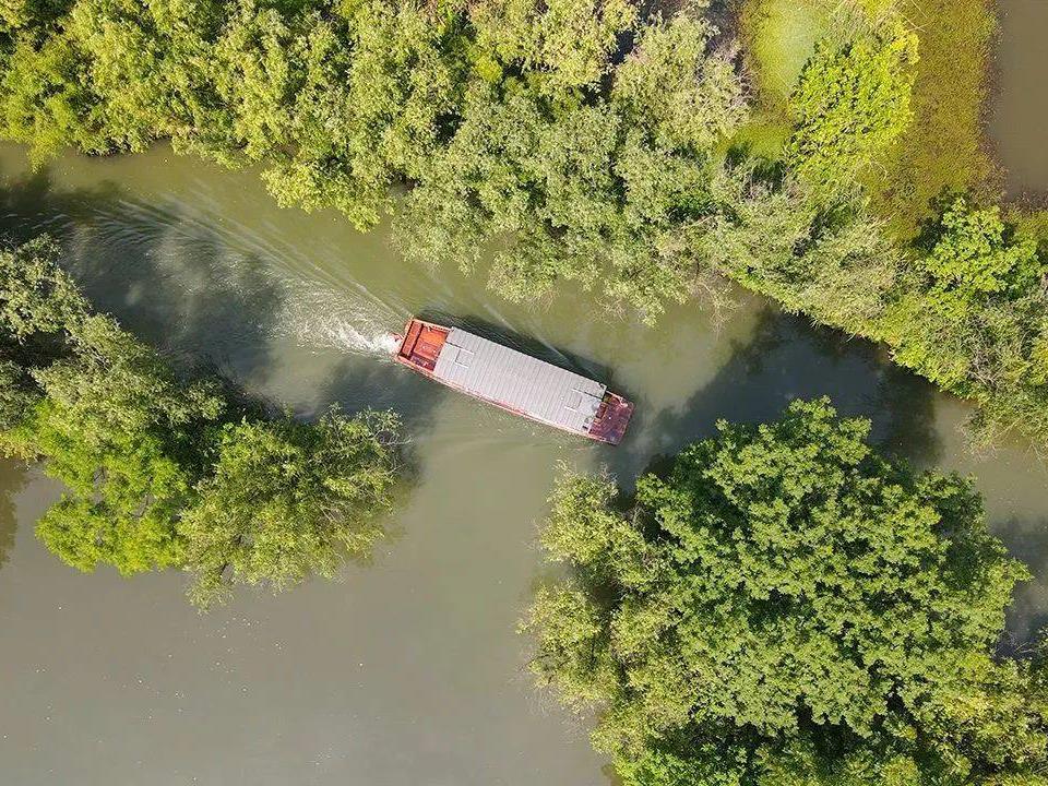 水道如巷,鱼塘栉比,串联成独特的水上游线,游客不论是乘坐电瓶船或是摇橹船,皆可尽赏繁花胜景,品味都市里的慢生活。